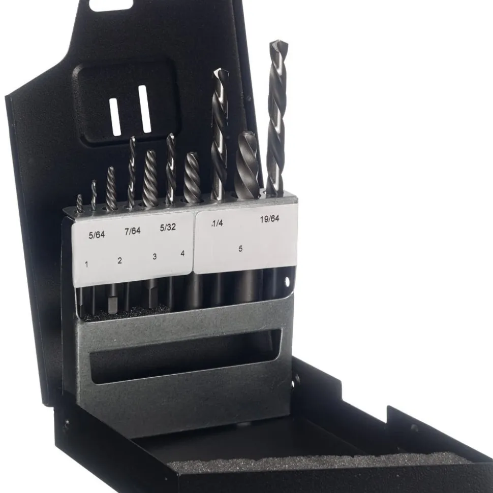 - Includes Drill (705) Sizes 5/64, 7/64, 5/32, 1/4, 19/64, Screw Ext Sizes #1 – #5