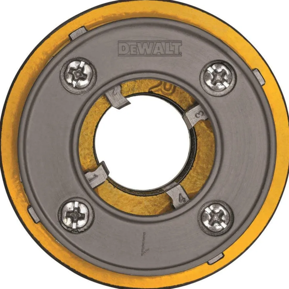 DEWALT pipe threading die heads are available in 1/2″ – 2″ and come complete with High Speed Steel Dies already in place. The die heads will cut a right-hand thread to the NPT standard and are compatible with the FLEXVOLT® 60V MAX* Pipe Threader and the RIDGID® 700 Power Drive 12R Style.**