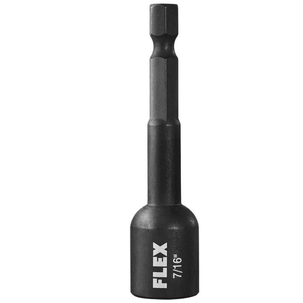 The FLEX 2-9/16″ 4-Piece Impact Magnetic Nut Driver set equips you and your FLEX 24V Drill or Impact Driver with top-quality hex essentials. Fasten and loosen with ultimate efficiency thanks to a recessed corner socket design and magnetic grip, helping to prevent shavings and slippage for long-lasting dependability. An advantageous 2-9/16″ reach helps you dominate even those more demanding applications.