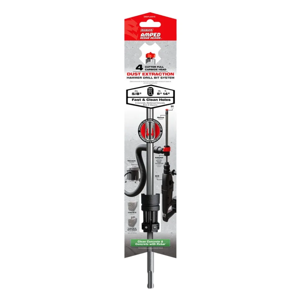 - Compact Snap-Lock Adapter (sold separately, two versions for SDS-Plus and SDS-Max) connects the AMPED Rebar Demon Dust Extraction Hammer drill bit to vacuums for maximum dust and debris extraction and allows you to easy and quickly exchange different drill bit sizes