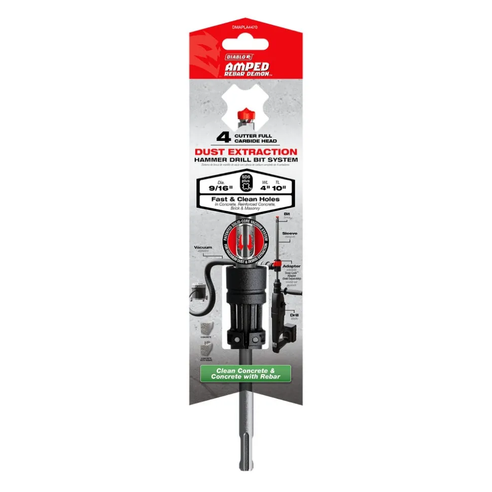 - Compact Snap-Lock Adapter (sold separately, two versions for SDS-Plus and SDS-Max) connects the AMPED Rebar Demon Dust Extraction Hammer drill bit to vacuums for maximum dust and debris extraction and allows you to easy and quickly exchange different drill bit sizes