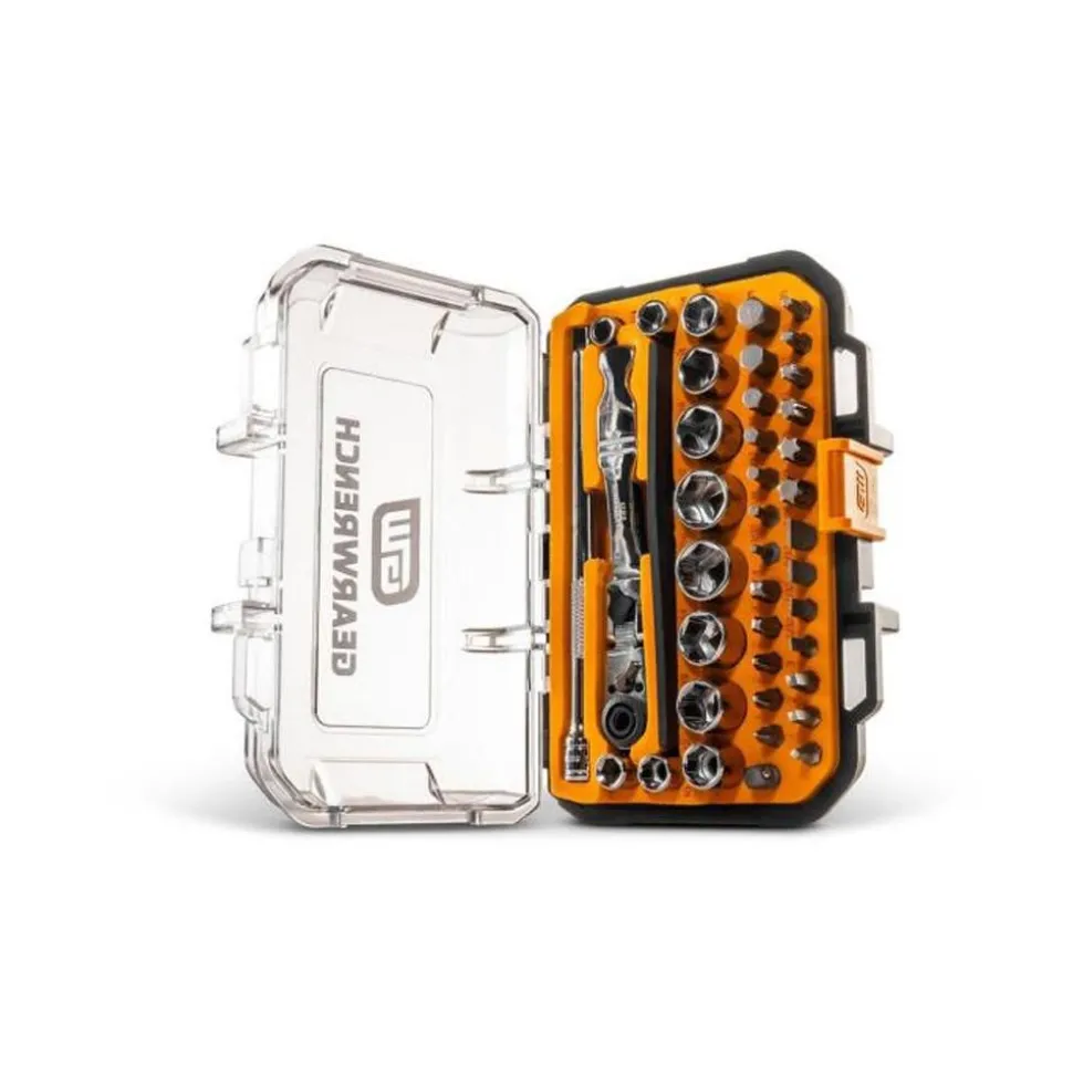 | Size | 72T Ratchet, 2 Adapters, 6″ Extenstion, Magnetic StripSockets (SAE) 9/16”, 1/2”, 7/16”, 3/8”, 5/16”, 1/4″ (Metric) 14mm, 13mm, 12mm, 10mm, 8mm(Hex bits) 3/8”, 5/16”, 1/4”, 3/16”, 5/32”, 1/8”, 3/32”, (Torx bits) T50, T45, T40, T30, T25, T20(Phillips bits) PH4, PH3, PH2 x 2, PH1,(Slotted bits) 5/16”, 9/32”, 7/32”, 5/32”(Square bits) S3, S2, S1 |