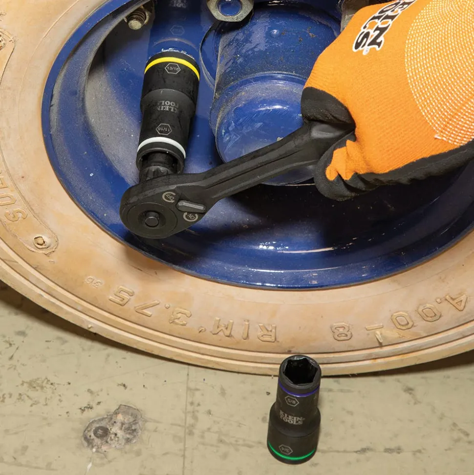 - Deep Well Impact Flip Socket Set includes ten sizes combined into five color-coded sockets plus two nested adapters