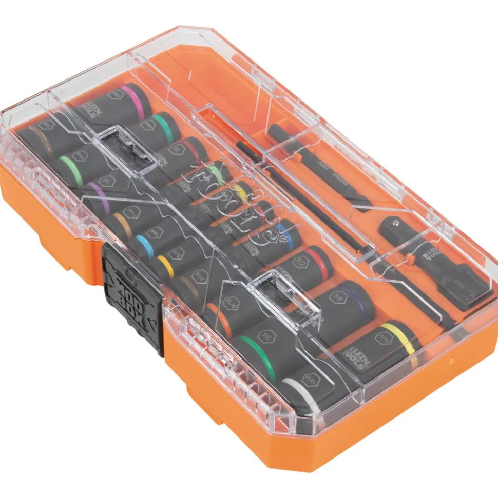 - Deep Well Impact Flip Socket Set includes 20 SAE and metric sizes combined into 10 color-coded sockets plus two nested adapters and one extended shaft