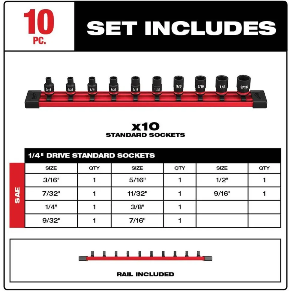 10 Pc. Shockwave Impact Duty 1/4″ Drive SAE Standard Socket Set 49-66-7000
