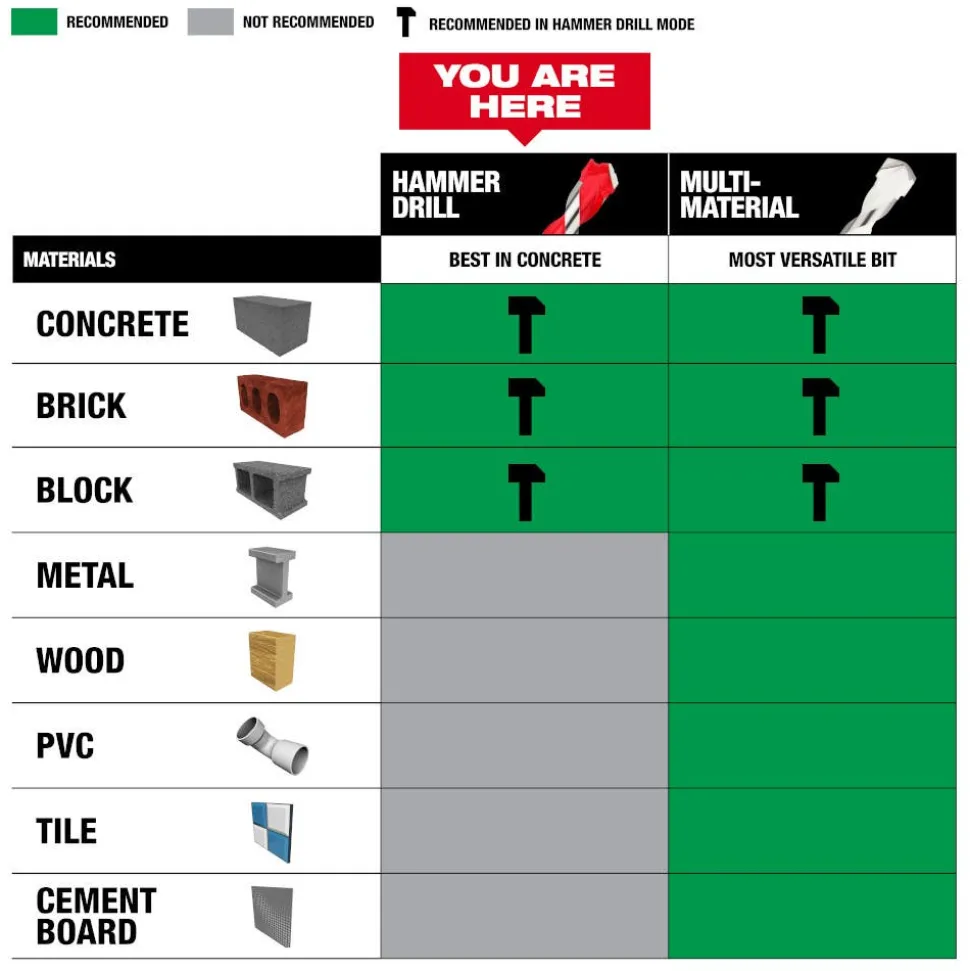 - For use in concrete, brick, and block