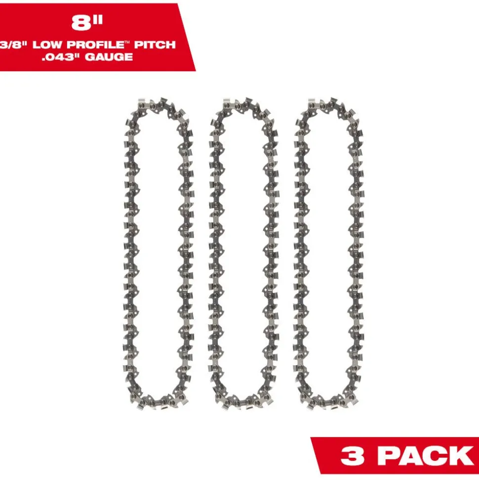 - Includes (3) 8″ 3/8″ LOW PROFILE™ Pitch, .043″ Gauge Saw Chains